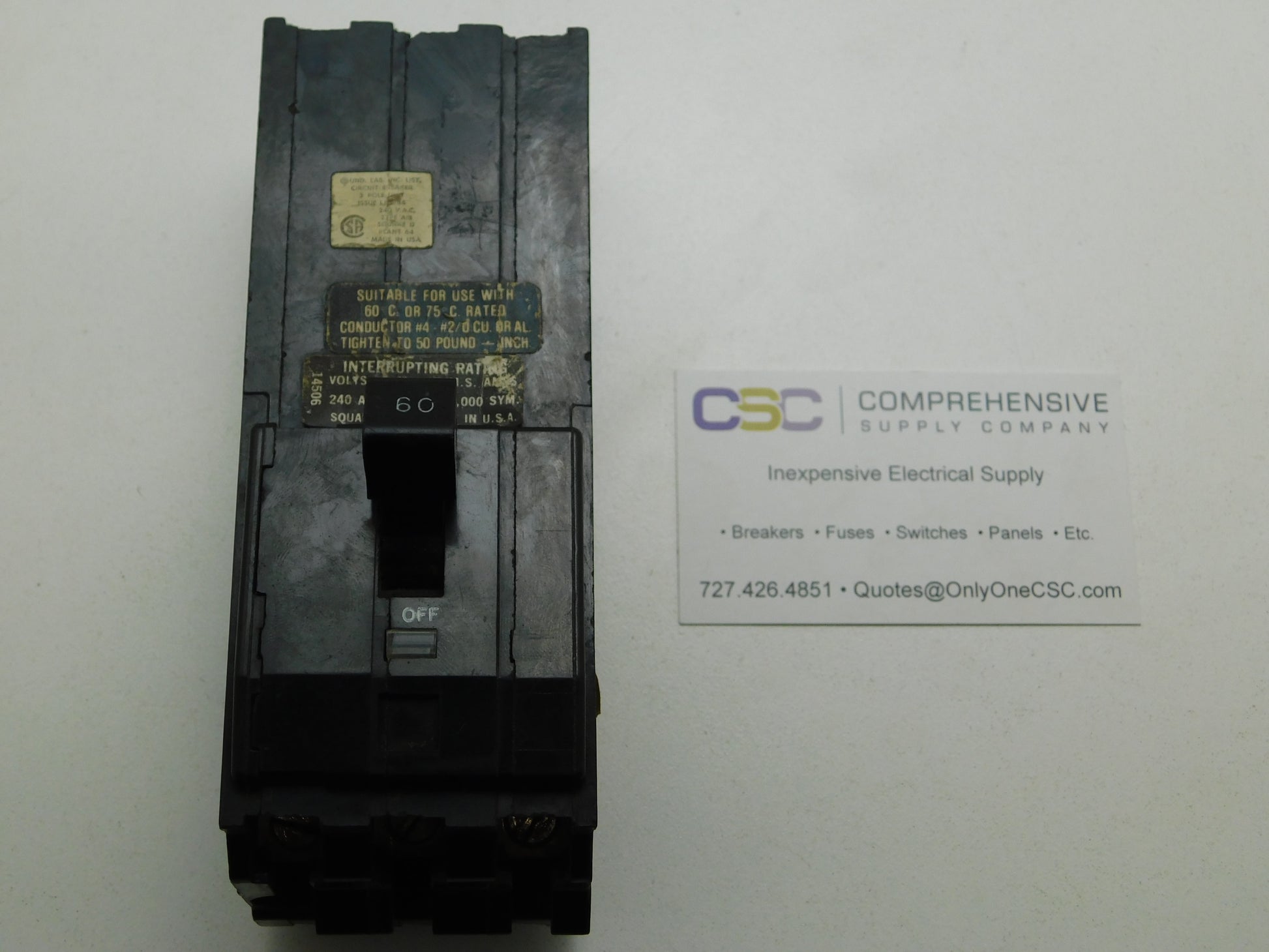 A1B360 - Square D 60A Amp 3P Pole 10kA@240V Bolt On Circuit Breaker