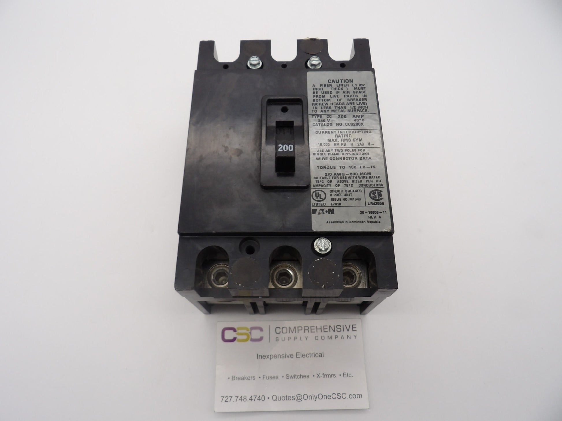 CC3200X - Eaton 200A Amp 3P Pole 10kA@240V Bolt On Circuit Breaker