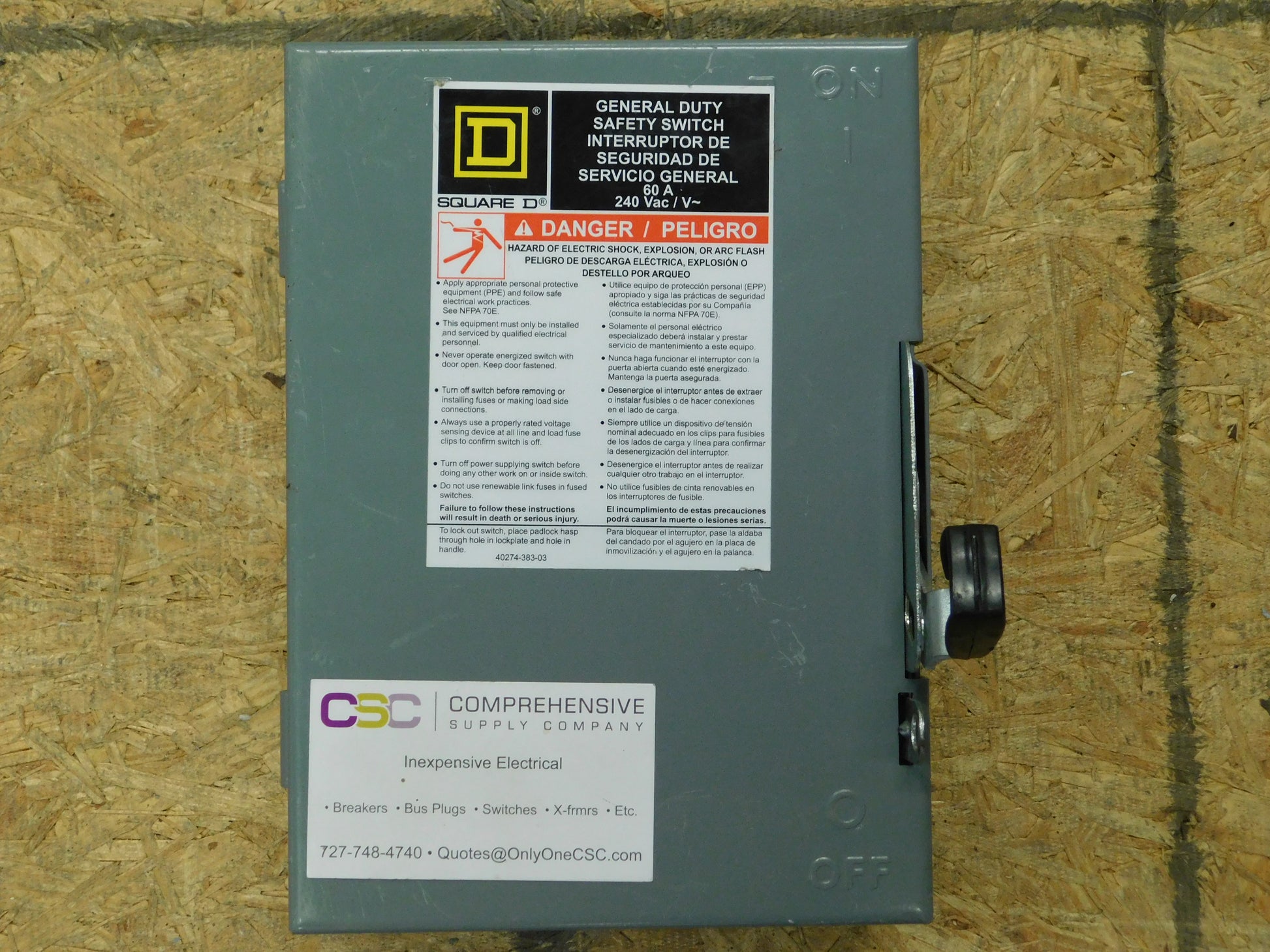 DU322 - Square D 60A Amp 3P Pole 240V Nema 1 Non-Fusible Safety Switch