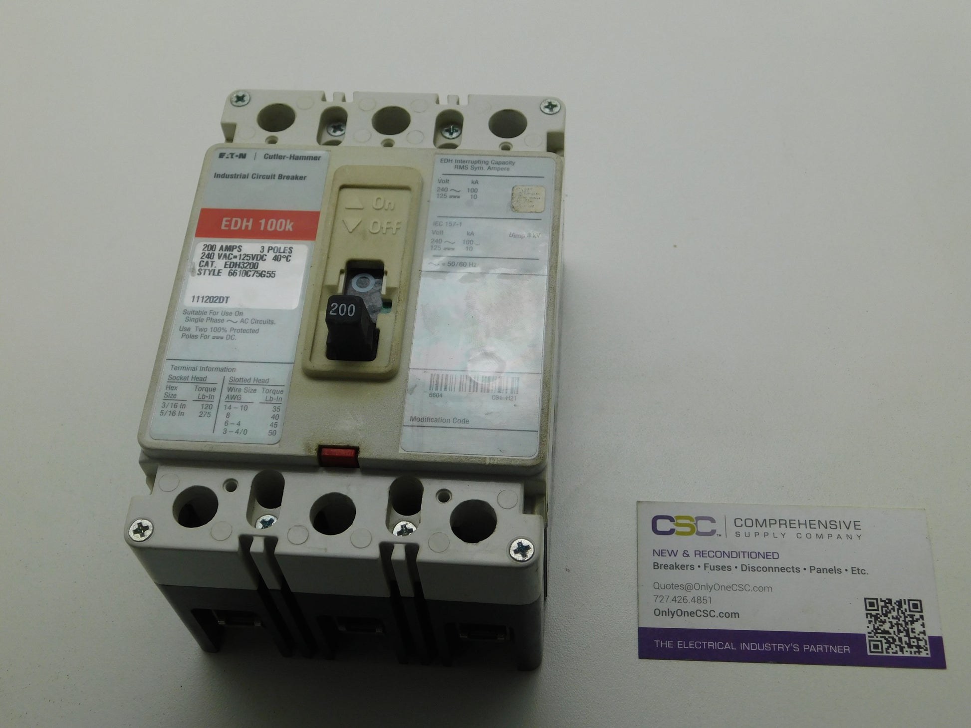 EDH3200 - Eaton 200A Amp 3P Pole 100kA@240V Bolt On Circuit Breaker W/Red Label