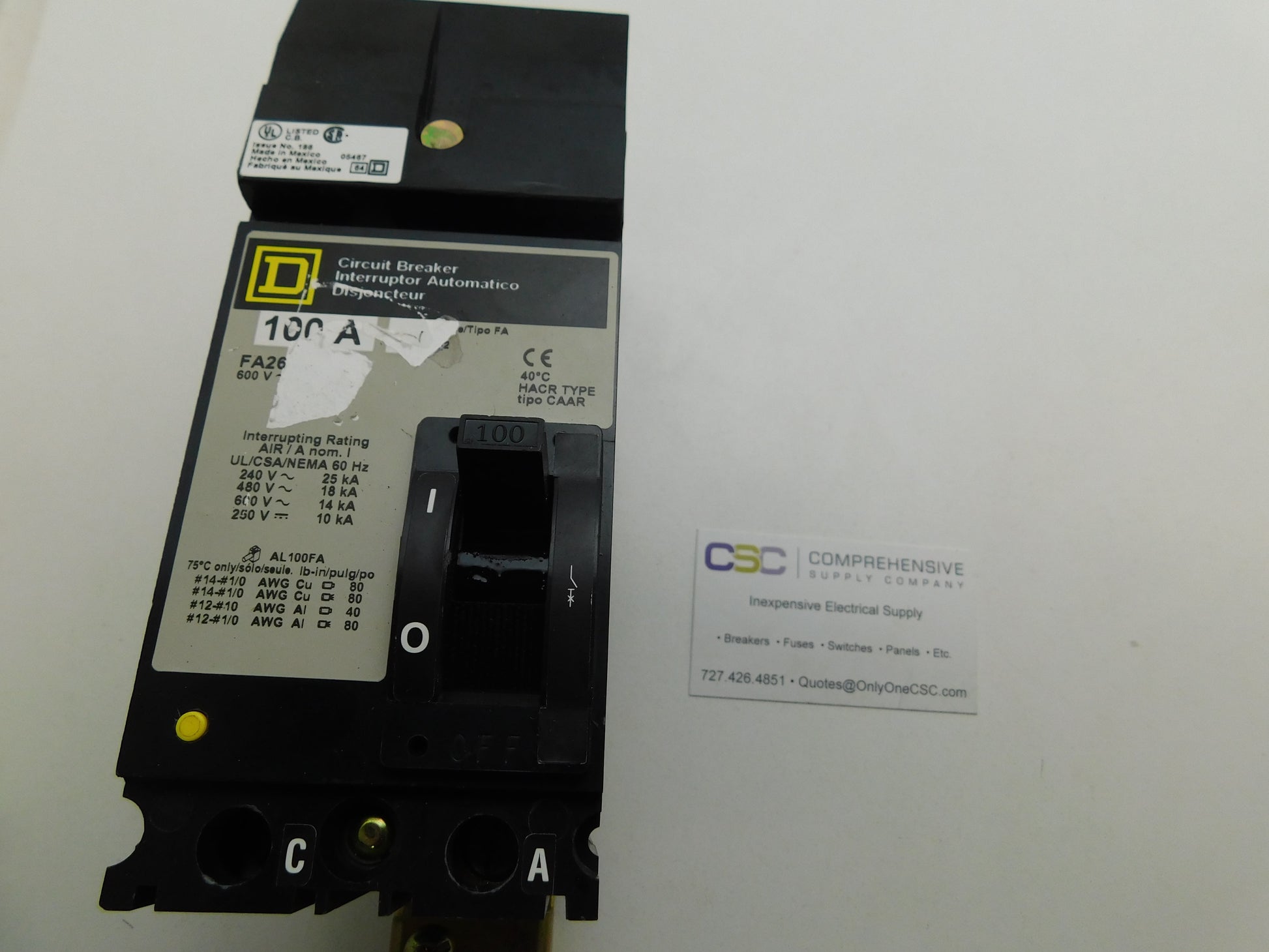 FA26100CA - Square D 100A Amp 2P Pole 600V 18kA@480V I-Line Plug On Circuit Breaker W/Gray Label