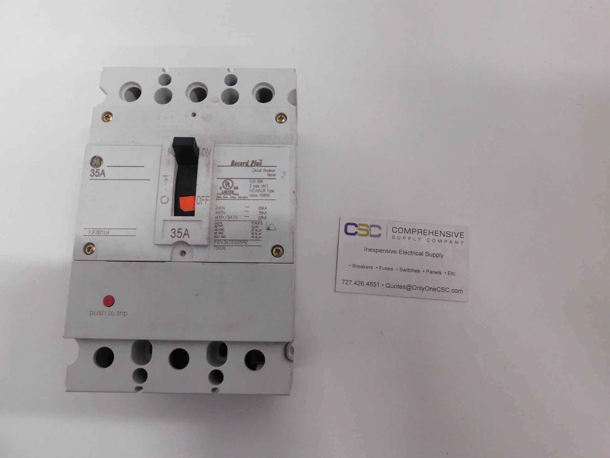 FBV36TE035R2 - GE 35A Amp 3P Pole 600V 35kA@480V Bolt On Record Plus Circuit Breaker