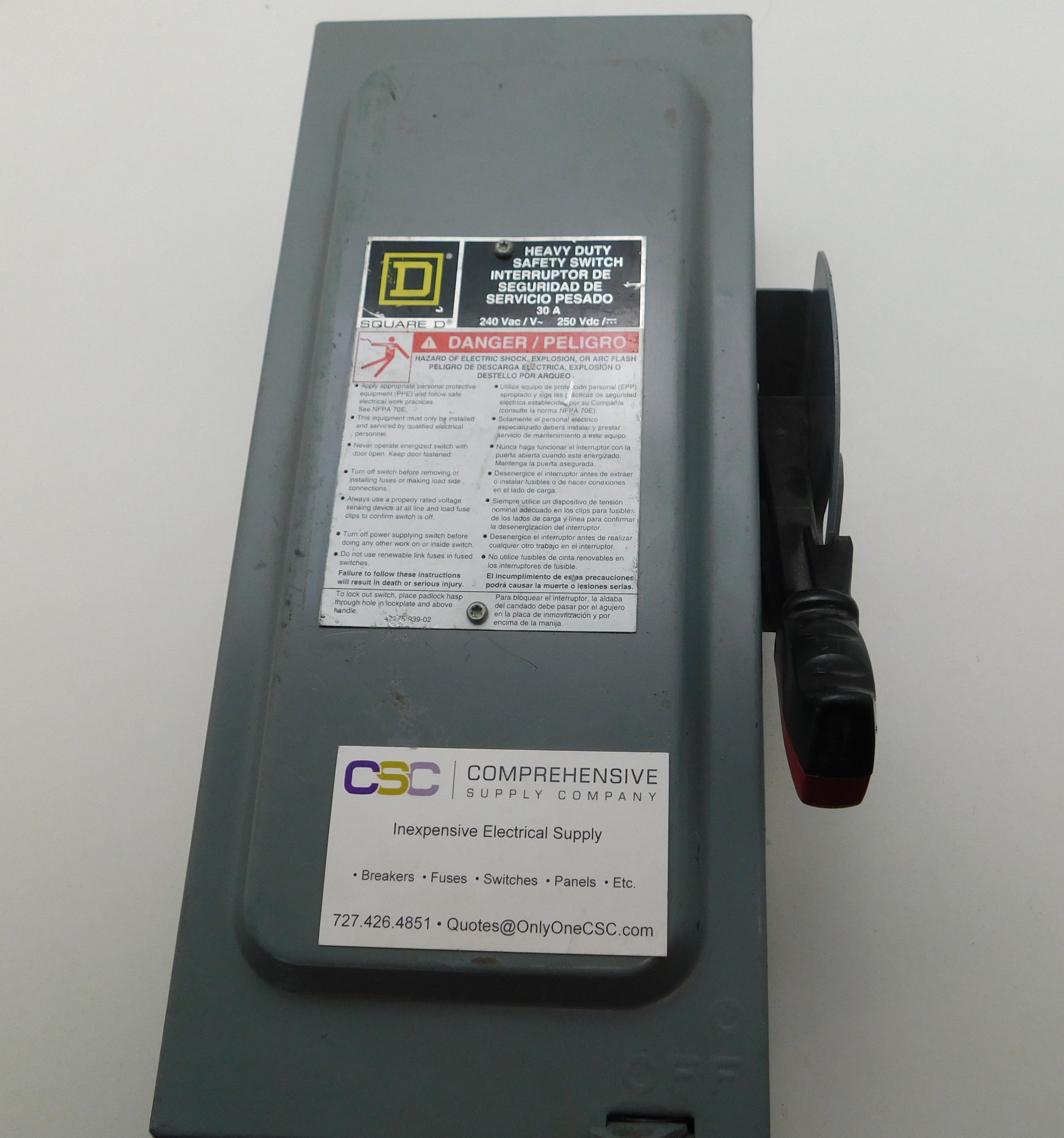 H321N - Square D 30A Amp 3P Pole 240V Nema 1 Fusible Heavy Duty Safety Switch W/Neutral
