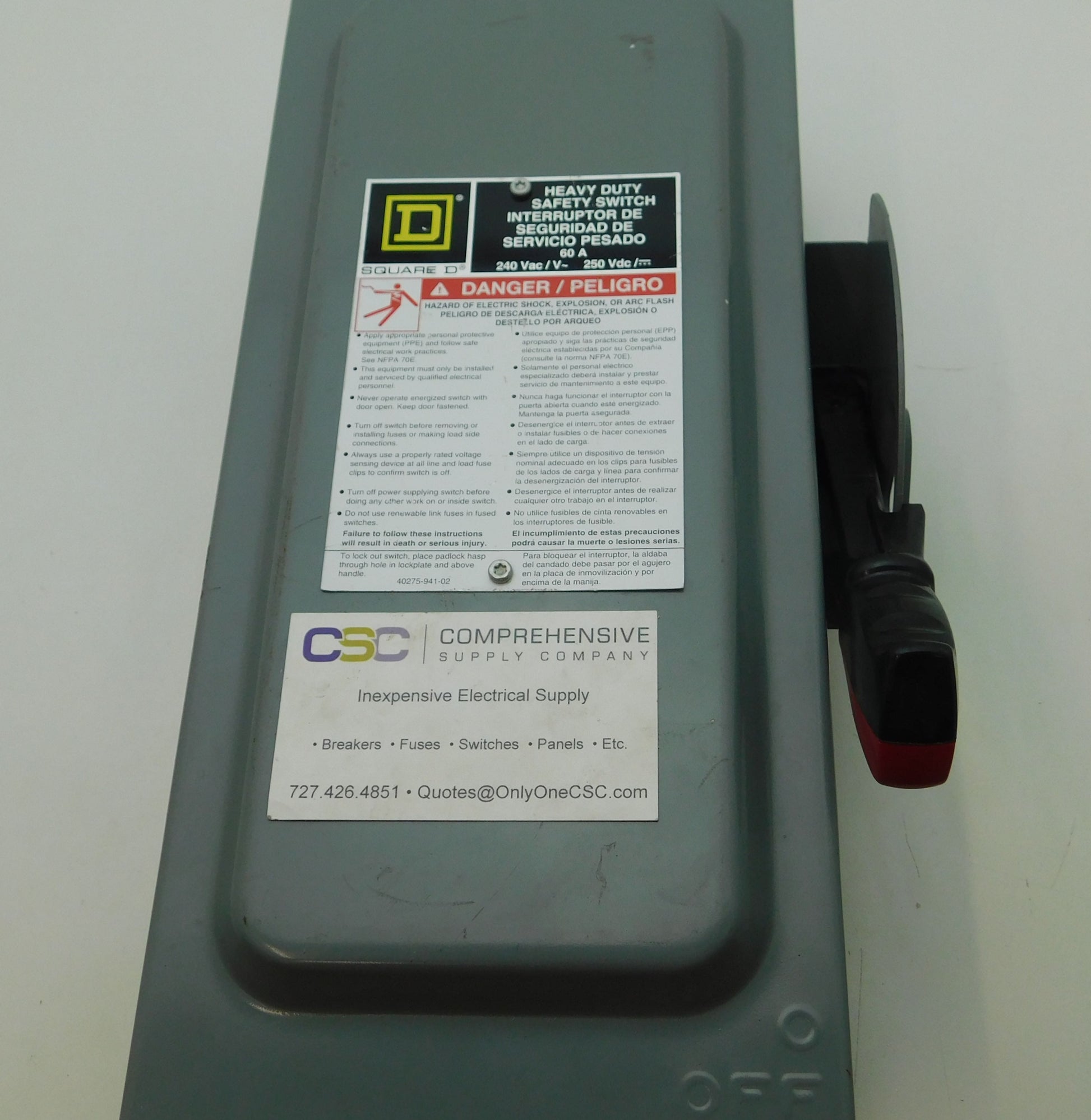 H322N - Square D 60A Amp 3P Pole 240V Nema 1 Fusible Heavy Duty Safety Switch W/Neutral