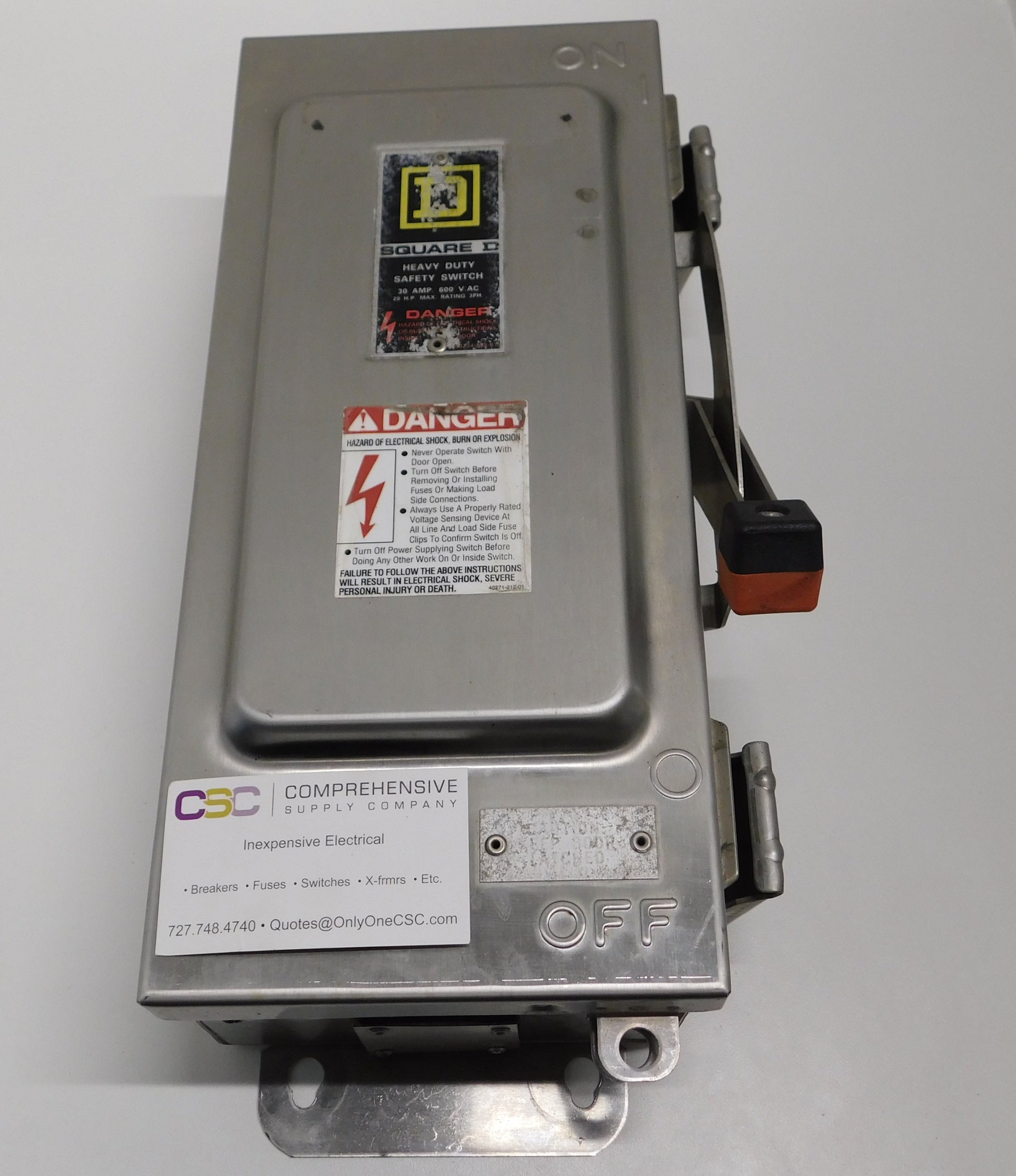 H361DS - Square D 30A Amp 3P Pole 600V Nema 4/4X Fusible Heavy Duty Stainless Steel Safety Switch