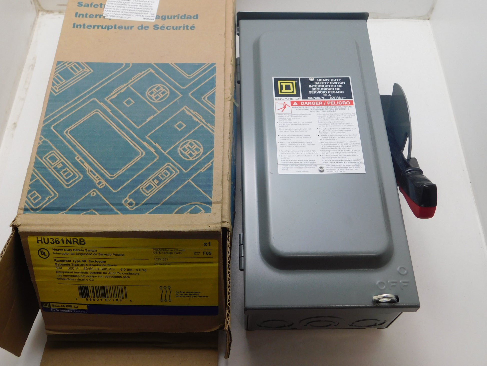 HU361NRB - Square D 30A Amp 3P Pole 600V Nema 3R Non-Fusible Heavy Duty Safety Switch W/Neutral & Bolt On Hub Provision