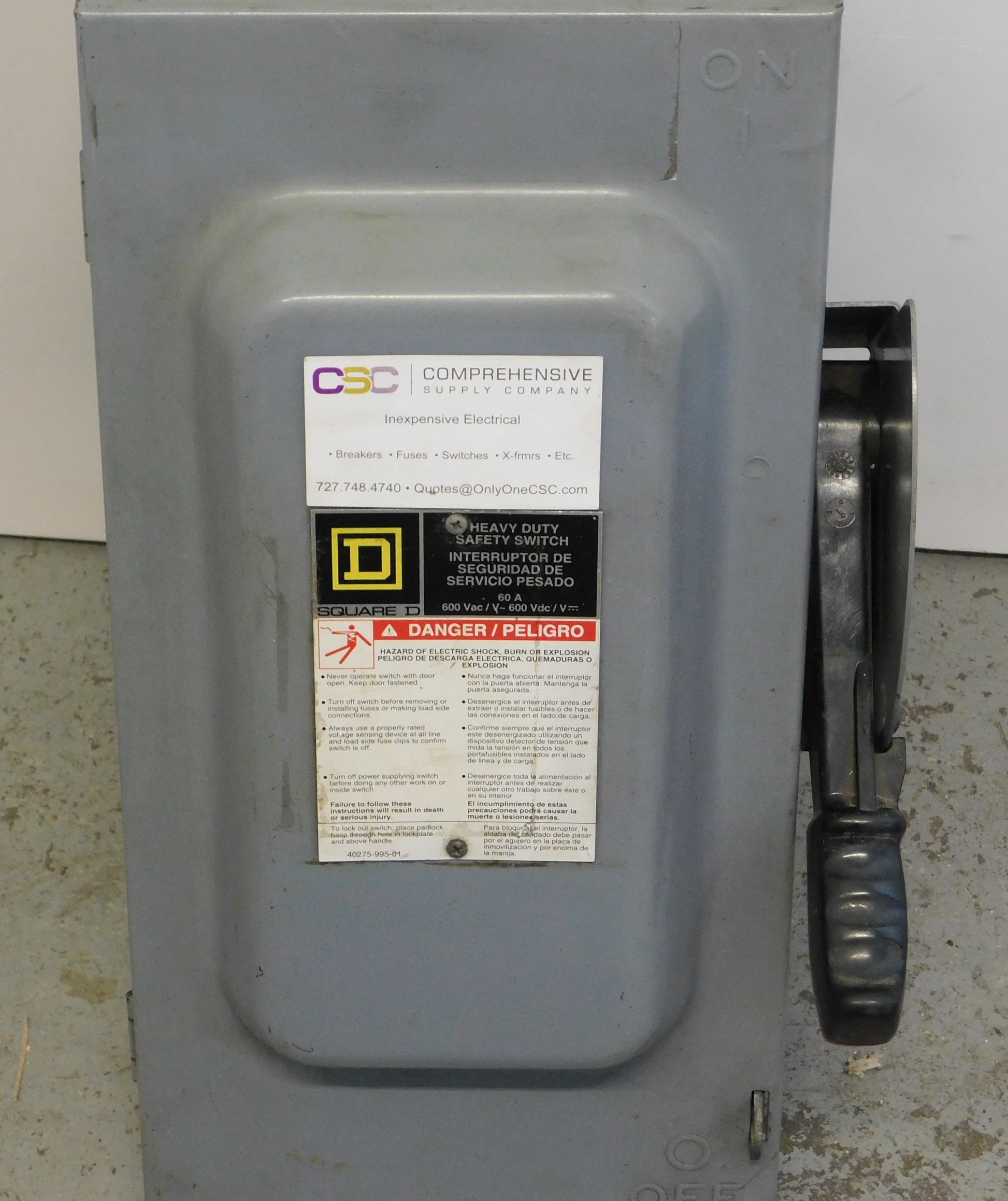 HU362 - Square D 60A Amp 3P Pole 600V Nema 1 Non-Fusible Heavy Duty Safety Switch