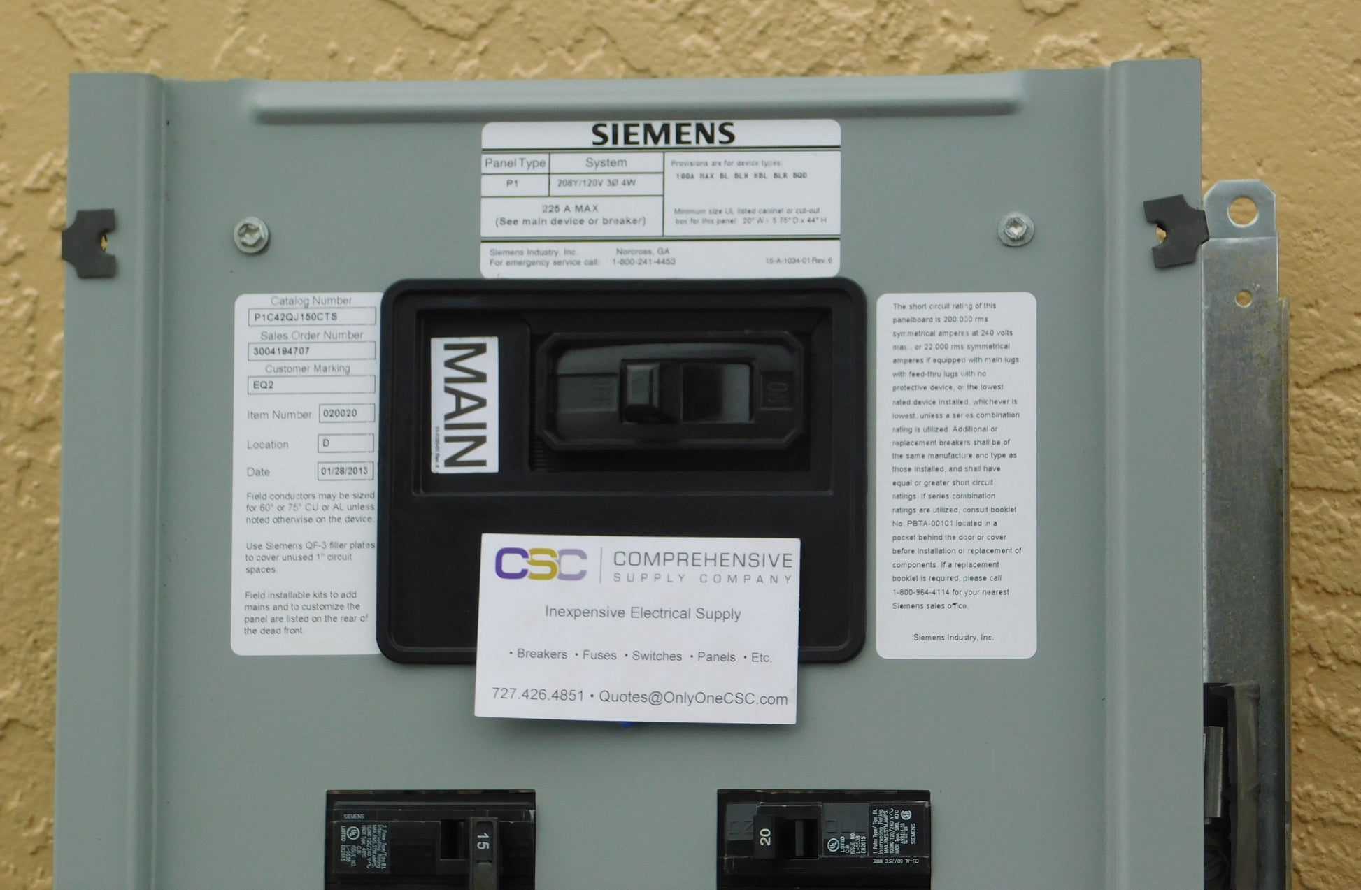 225A AMP 208Y/120V 3PH/4W 42SP P1 PANELBOARD W/150A MAIN BREAKER