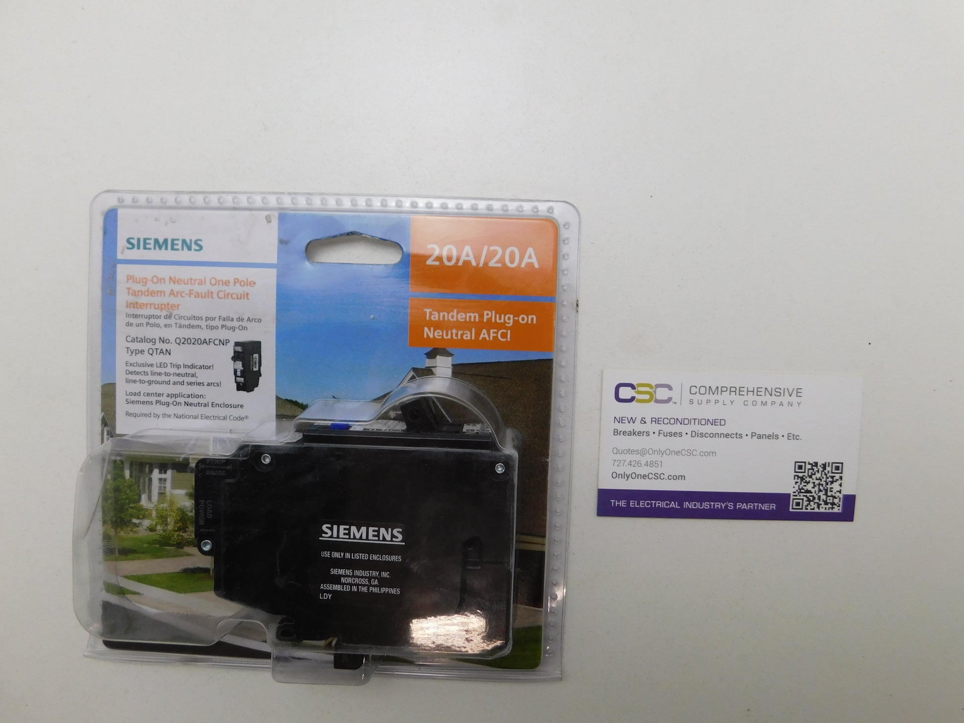 Q2020AFCN - Siemens 20/20A Amp 2X1P Pole 10kA@120V Plug On Neutral Combo Arc Fault AFCI Duplex Circuit Breaker