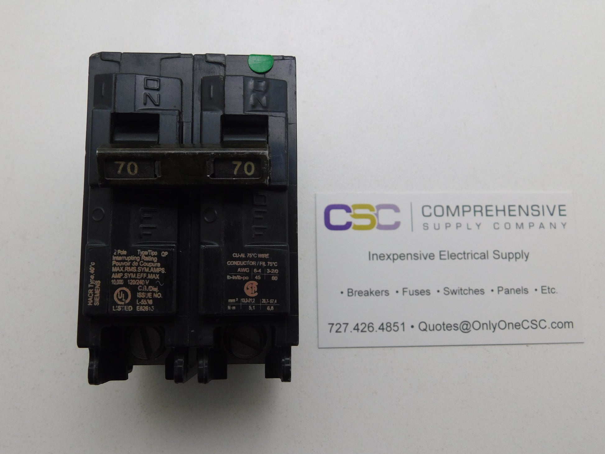 Q270 - Siemens 70A Amp 2P Pole 10kA@120/240V Plug On Circuit Breaker