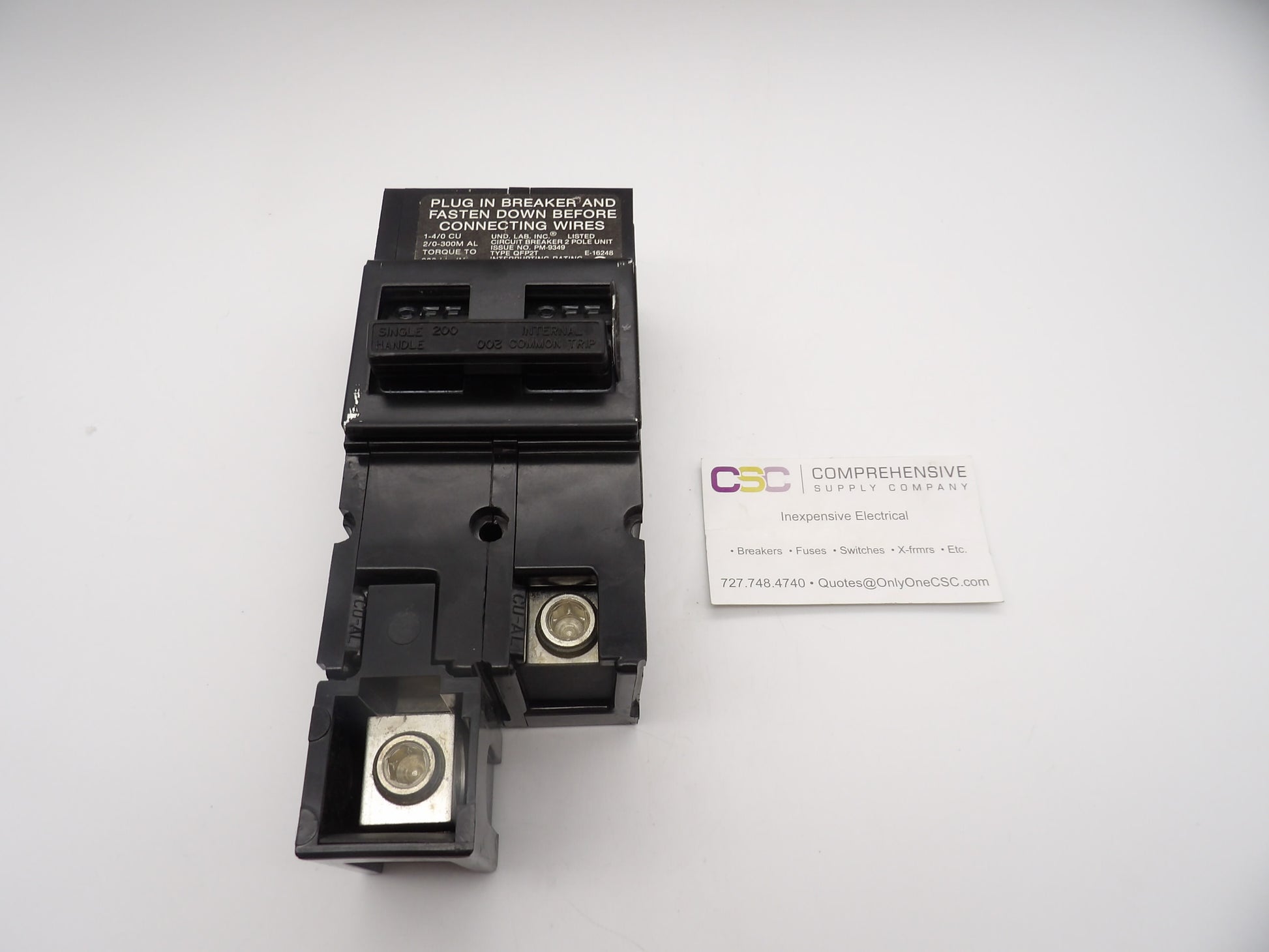 QFP2200T - Zinsco 200A Amp 2P Pole 10kA@240V Plug On Circuit Breaker W/ Offset Lugs