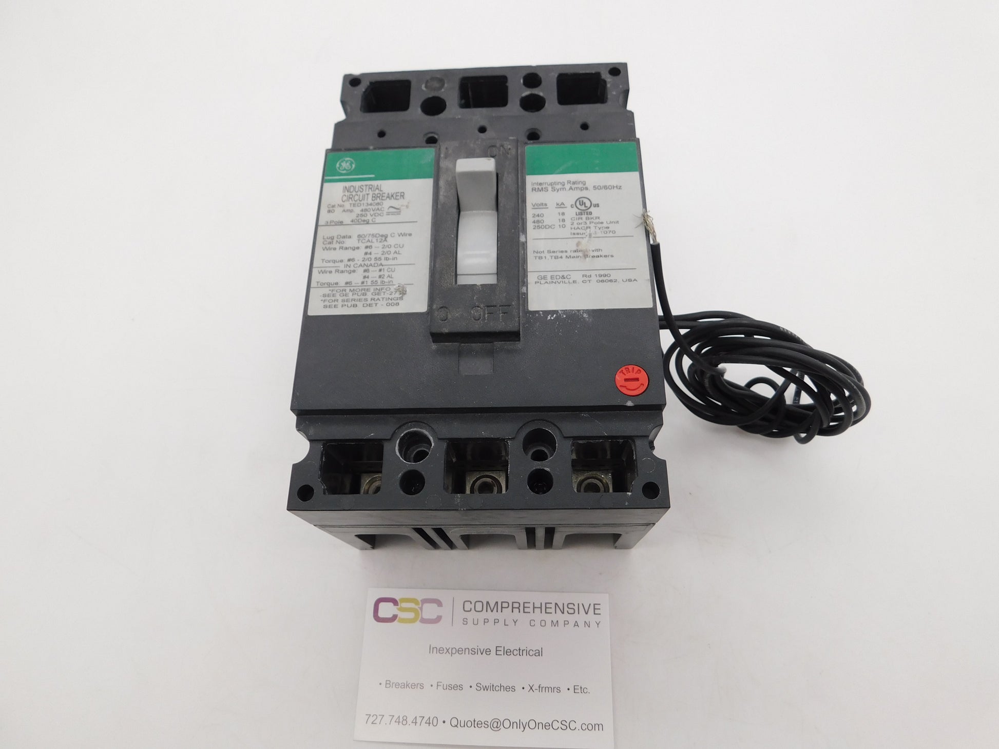 TED134080ST12 - GE 80A Amp 3P Pole 18kA@480V Bolt On Circuit Breaker W/120V Shunt Trip
