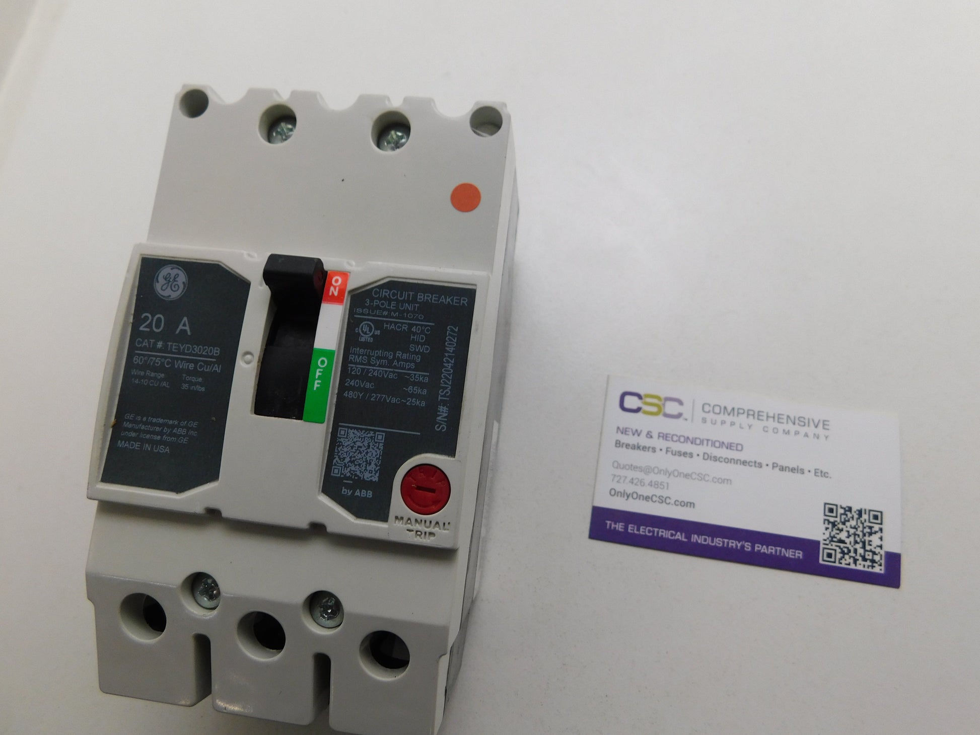 TEYD3020B - GE 20A Amp 3P Pole 25kA@480Y/277V Bolt On Circuit Breaker