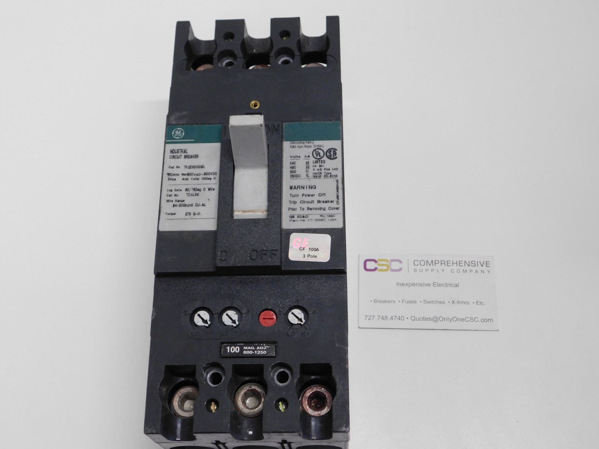 TFJ236100WL - GE 100A Amp 3P Pole 600V 22kA@480V Bolt On Circuit Breaker W/Lugs