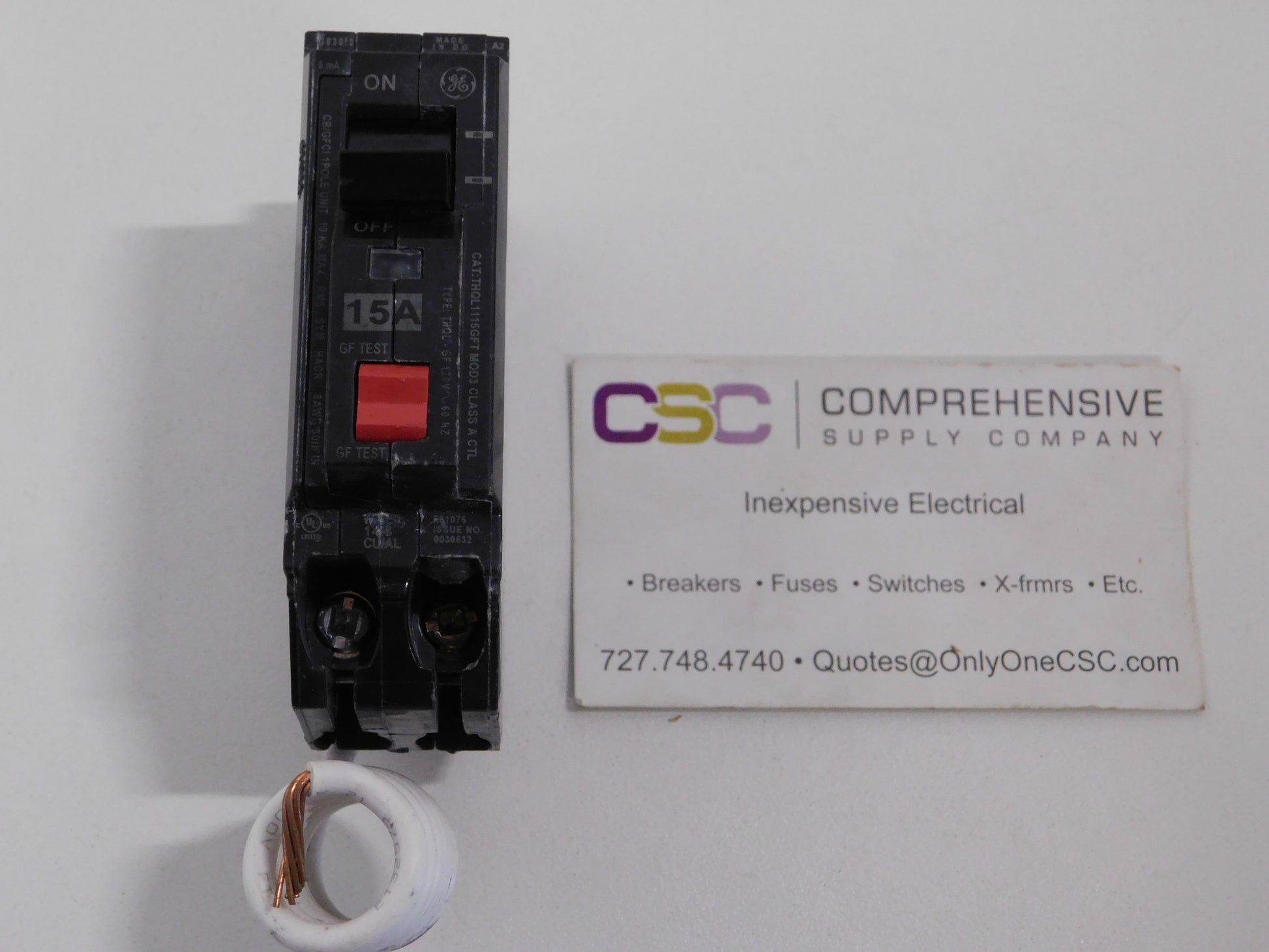THQL1115GFT - GE 15A Amp 1P Pole 10kA@120V Plug On Ground Fault GFCI Circuit Breaker