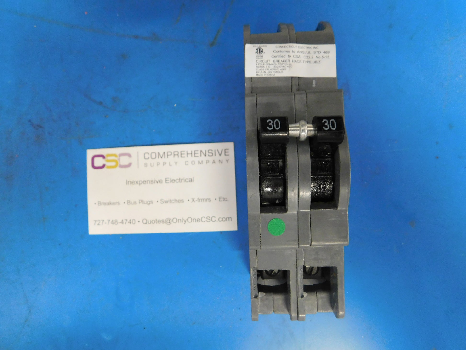 UBIZ-230 - Connecticut Electric 30A Amp 2P Pole 10kA@120/240V Plug On Zinsco Replacement Circuit Breaker